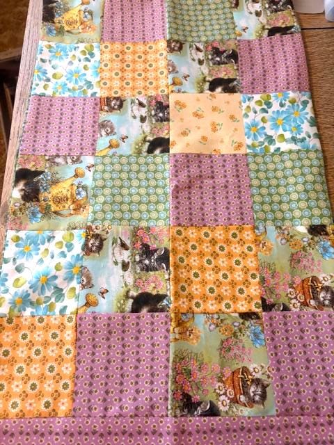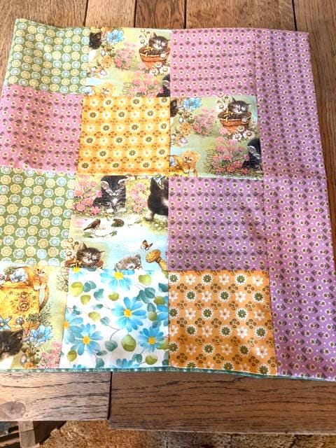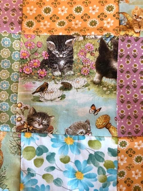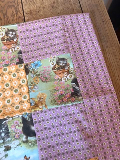 Adorable hand sewn patchwork kitten pillowcases-set of two pillowcases; standard size