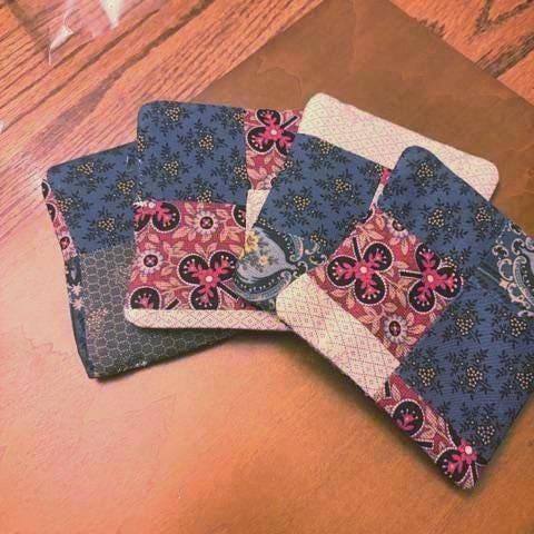 Quilted Fabric coasters-hand sewn; set of four