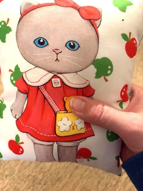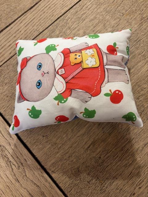 super soft children's pillow perfect for play or naptime; filled with hypoallergenic fill; adorable kitten pattern. Perfect for road trips, play dates and sleepovers