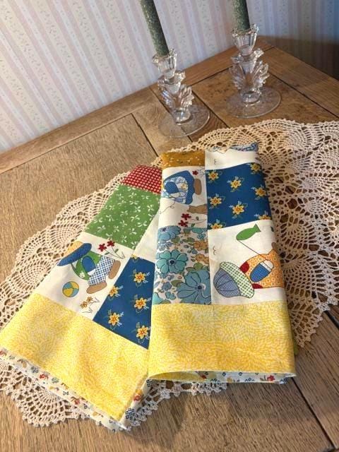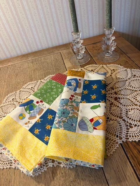 It doesn't get any sweeter than Sun Bonnet Sue pillowcases; adorable patchwork pattern; hand sewn; set of two cases (standard size)