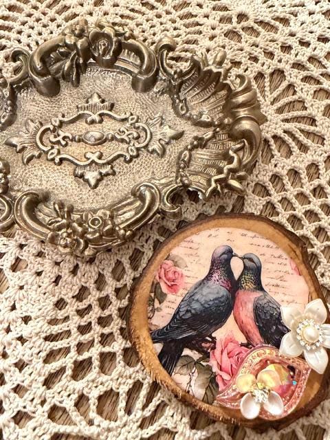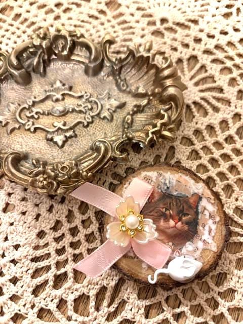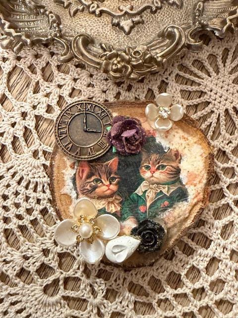Raw edges wooden magnets with your favorite animal on the front. Adorned with vintage buttons and decor, these magnets are adorable! Magnetic strip on the back holds magnet securely; decoupaged and collaged surface. You choose the one you want!