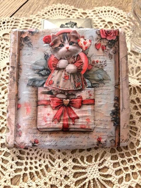 Welcome a treasured collage into a space that evokes creativity! Perfect for children's bedroom, classroom, or play room. Each tile is hand collaged and decoupaged to perfection. Coated with an acrylic sealant. Select from various one of a kind tile patterns.