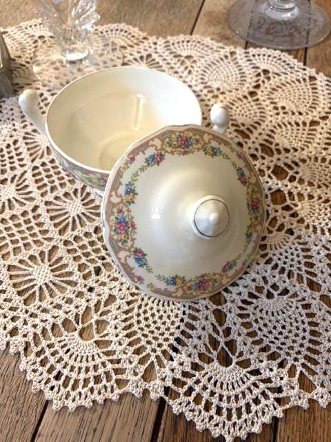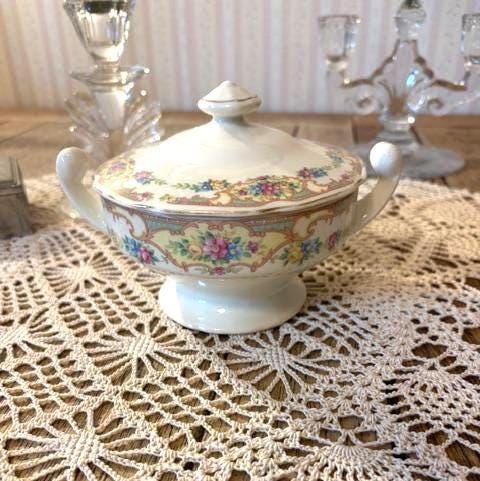 Beautiful antique tureen/small candy dish/small sugar bowl. Estate find. Absolutely beautiful condition-no chips or cracks. Antique white with gorgeous detailing--Victorian themed floral pattern.